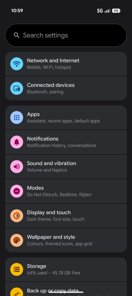 - Open de instellingen op de Android telefoon
